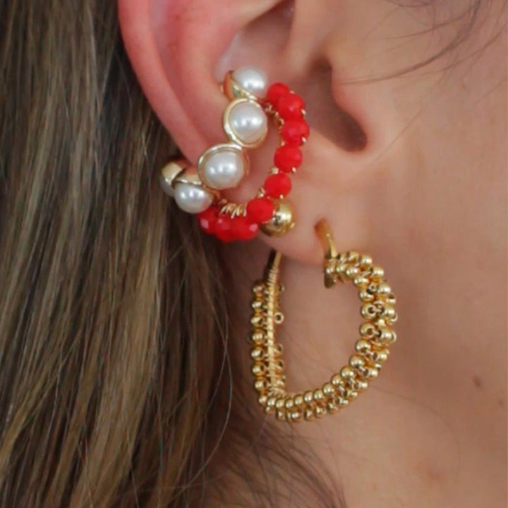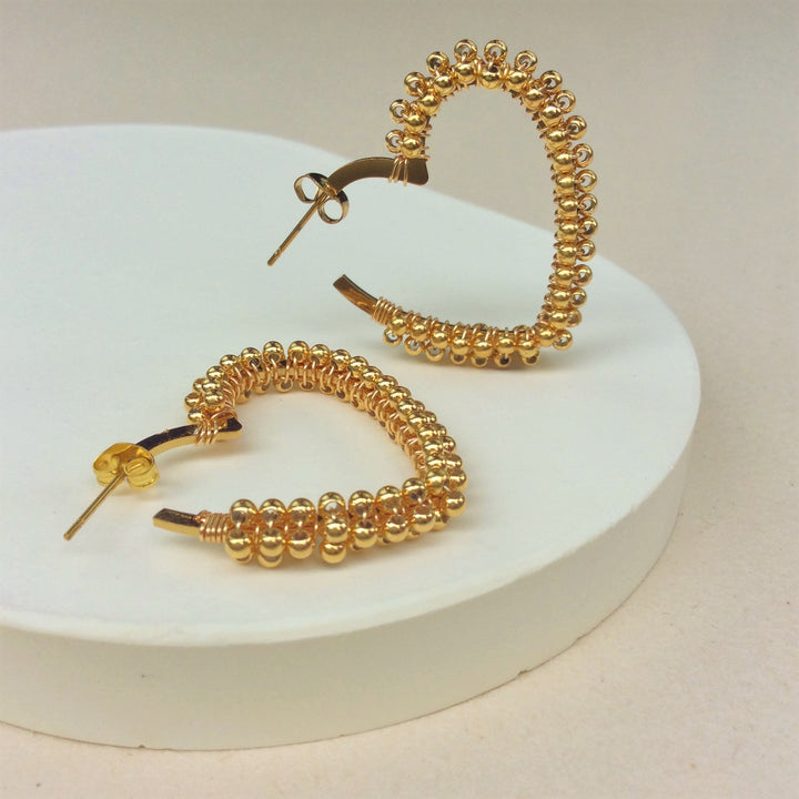 Maxiaretes en forma de corazón, tejida con alambre y balines 2.5 mm.