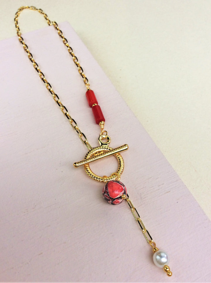 Collar corto en cadena eslabones medianos, broche marinero y piedras naturales.