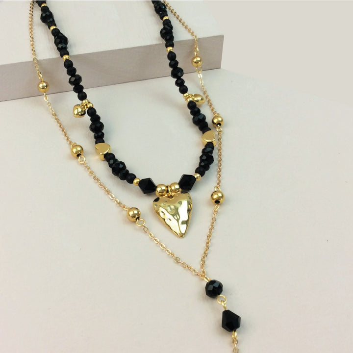 Medida Collar 1: Total largo 80 cm, es graduable, se puede usar como choker, collar corto o collar largo. Dije corazón martillado de 2 cm.