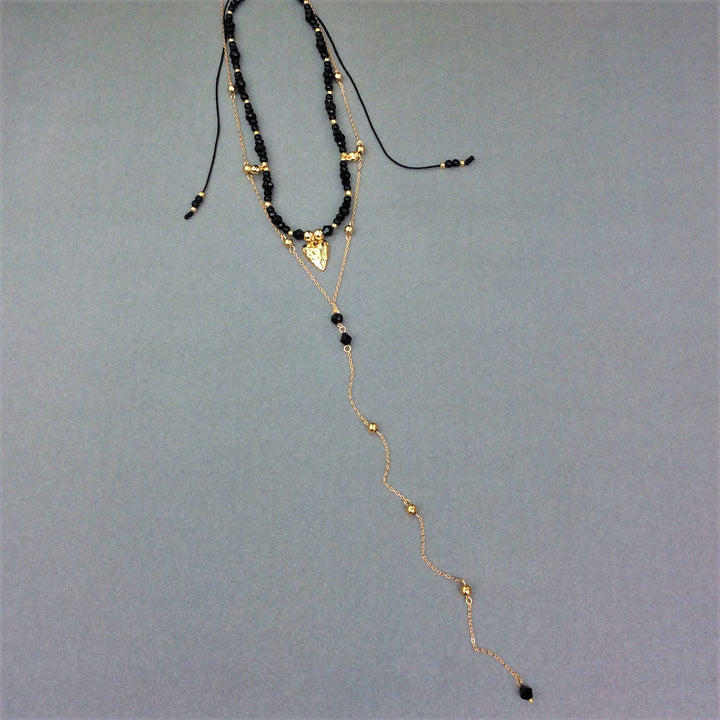 Collar por dos. Choker en cordón y muranos 4 mm y corbatín.