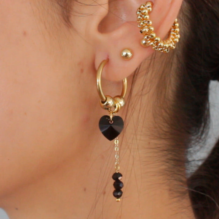 Candonga Huggies con Dije de Corazón en Cristal de swarosky de 1 cm y cadena colgante con muranos 4 mm de 4 cm.
